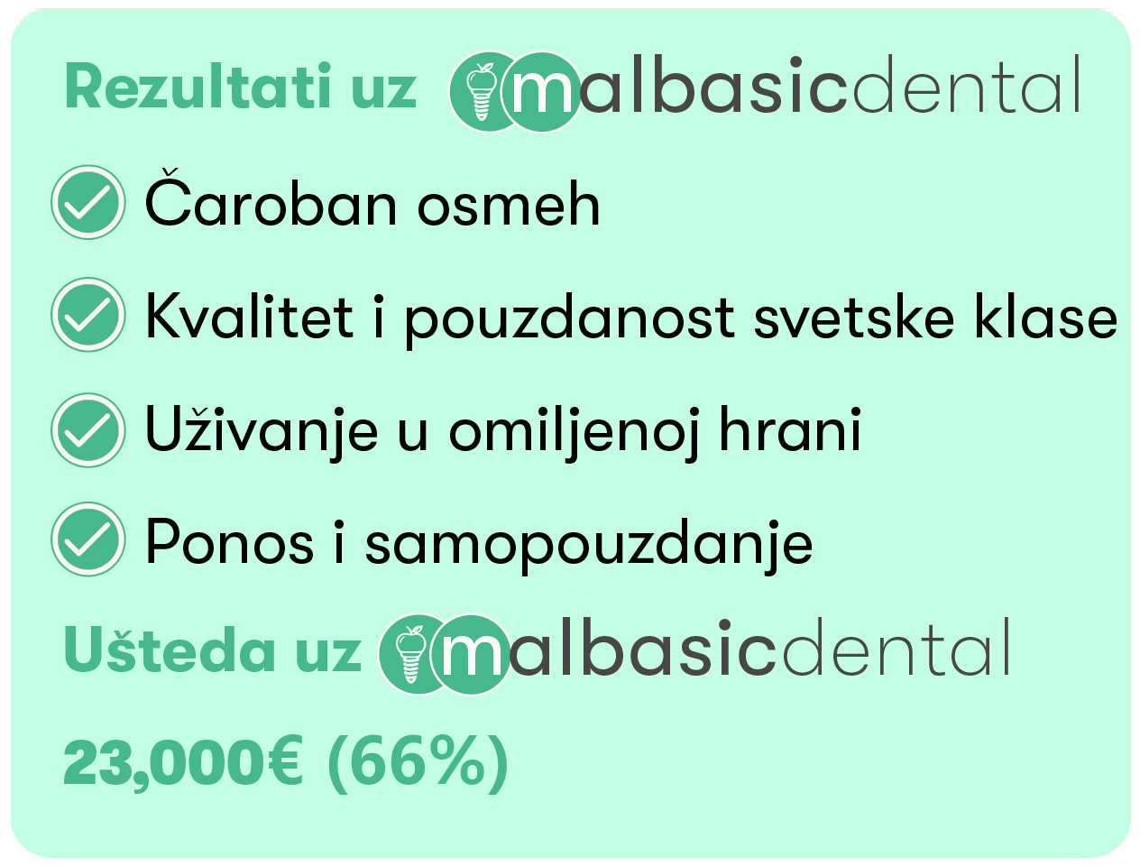 Sa nama ćete uštedeti oko 70% u poređenju sa vašim lokalnim stomatologom.